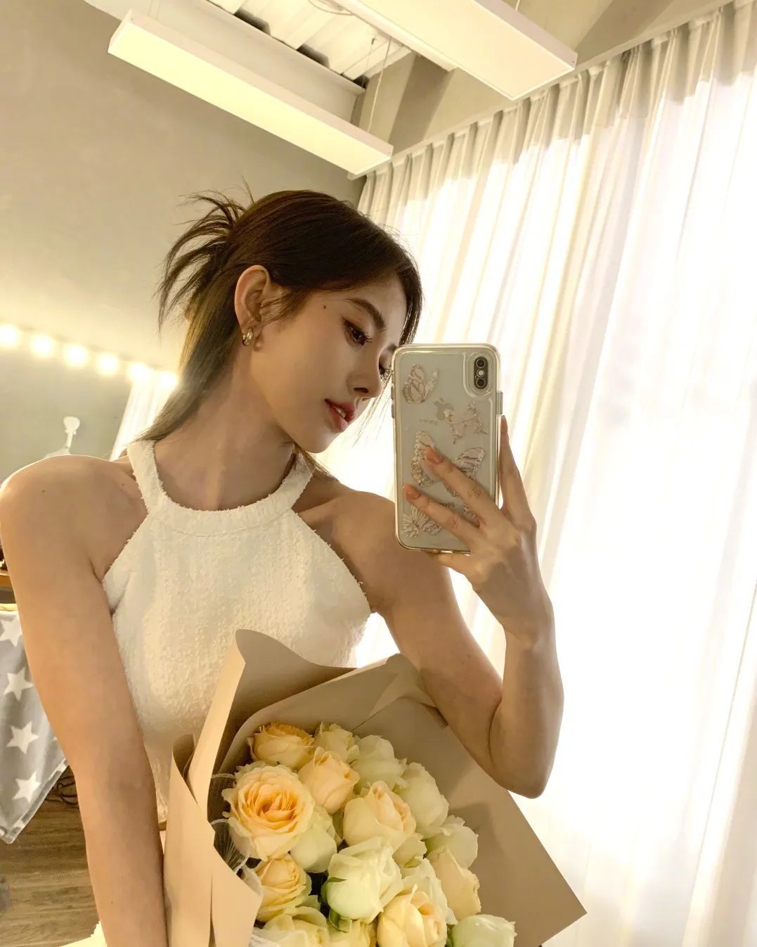 (她发了好几条ins给大家360度无死角展示,可见多喜欢这个造型)