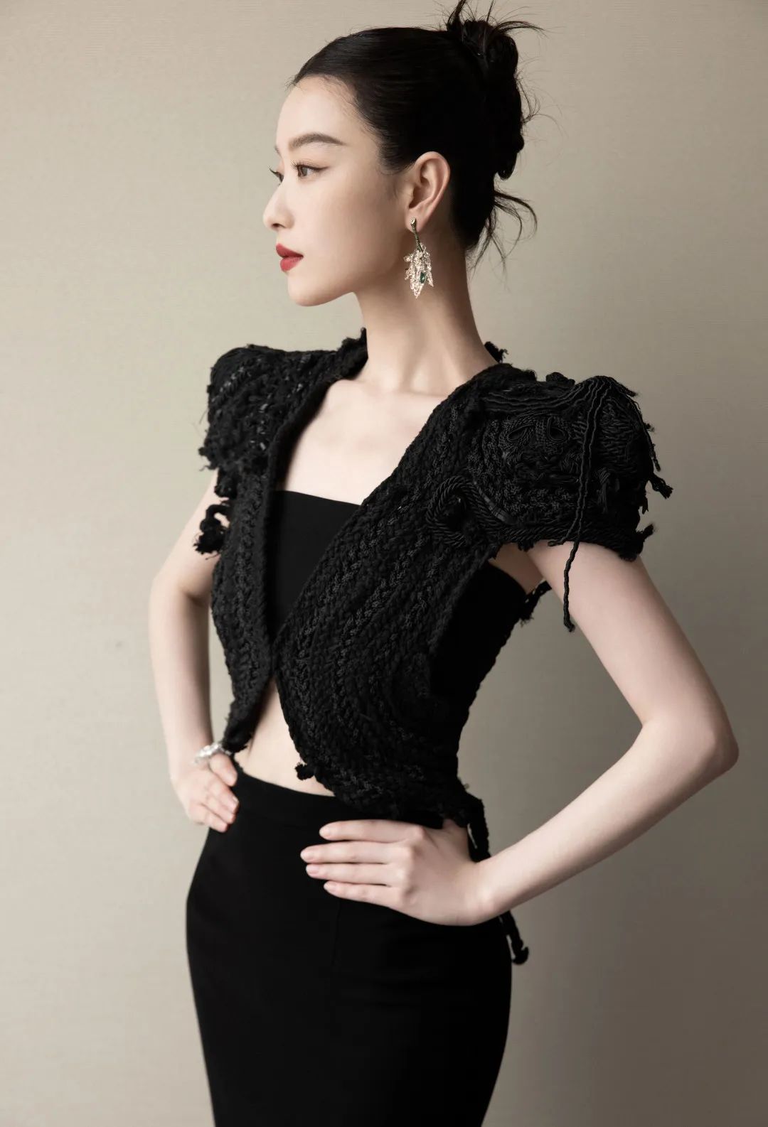 御姐路线逗号丸子也能拿捏,只需要把额前碎发整理干净,让丸子中的碎发来发挥随性感就行,照样时髦又大气。