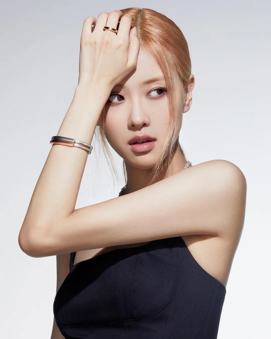 这个发型对同为长脸型的女生很有参考价值,利用头发的长短结构来制造层次,打破窄长的比例,平衡脸型和五官,所以即便将发束扎的利落,也不用担心脸长问题展露无遗,算是Rosé在发型上又一次的成功尝试。