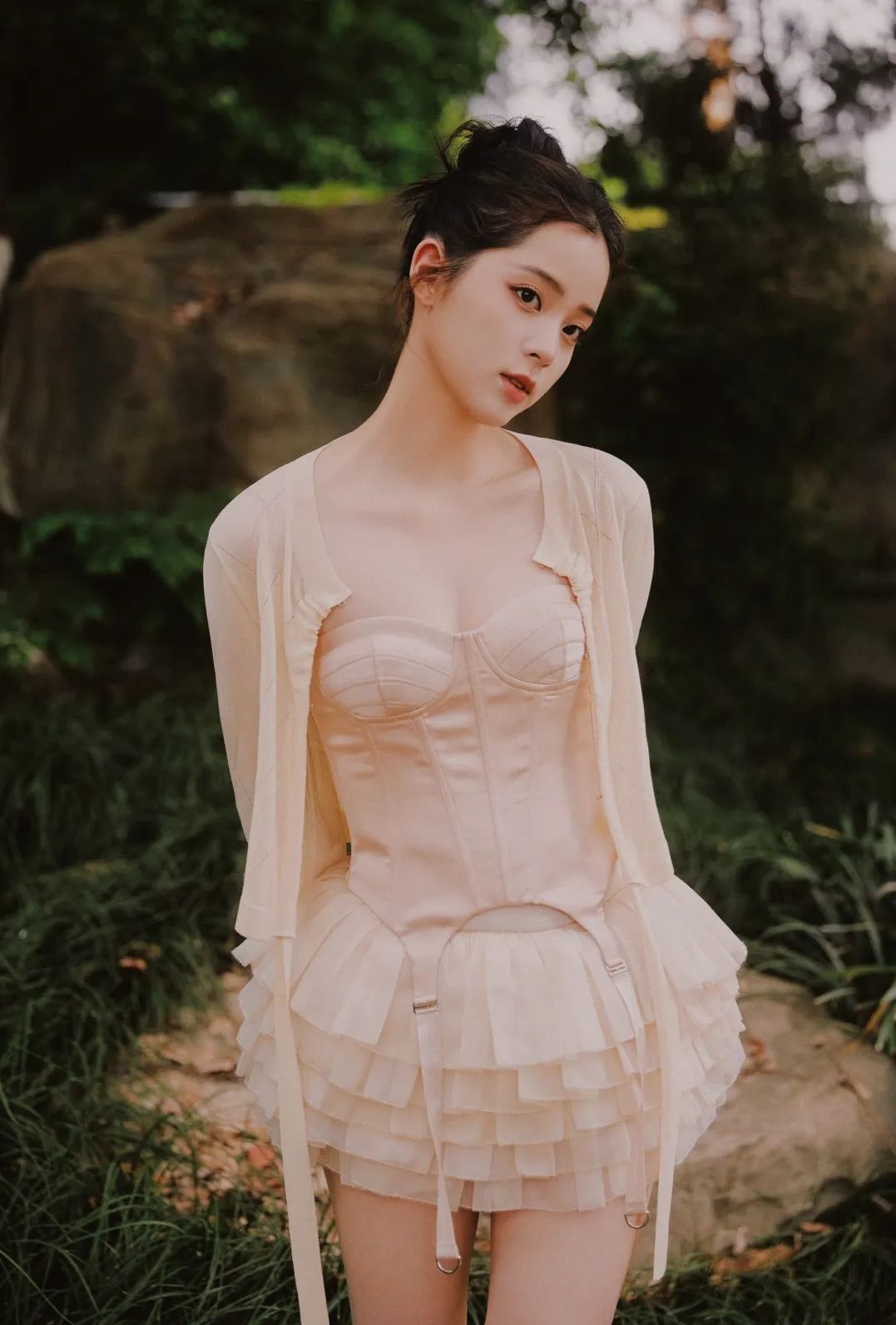 不想把头发全体扎起也没问题,半逗号丸子由美女示范给大家看。像鞠婧祎扎的中高位置就会比较有温柔的气质,而Rosé放在颅顶位置就更元气少女。