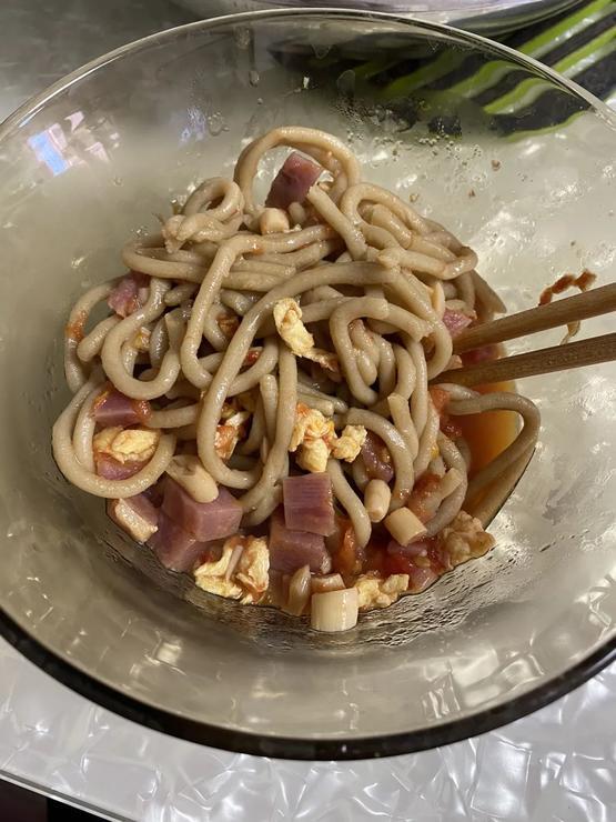 素臊子蒸莜面,不过一般不放火腿肠丨豆果美食网网友Y兔子耳朵Y