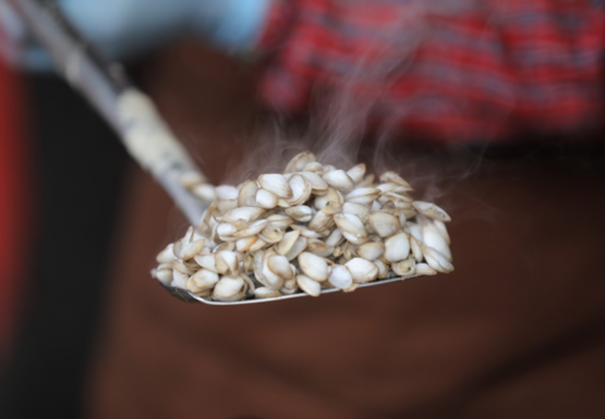 “海沙子”其实是一种蛤喇,学名“兰蛤”,幼苗时期很小仿如沙子,被当地渔民称为“海沙子”。