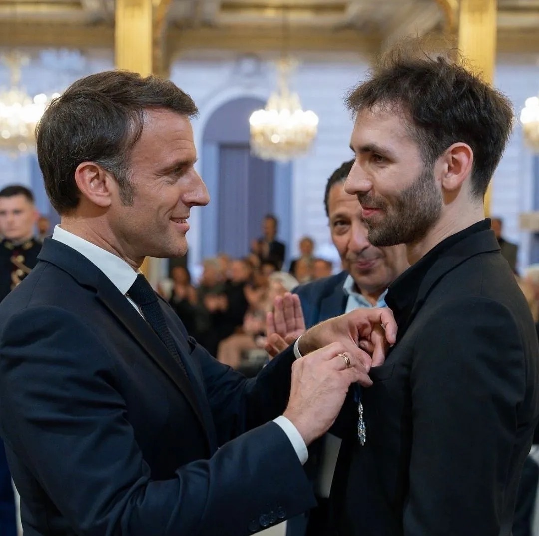 法国总统马克龙为康托洛夫颁发法国国家功绩骑士勋章。