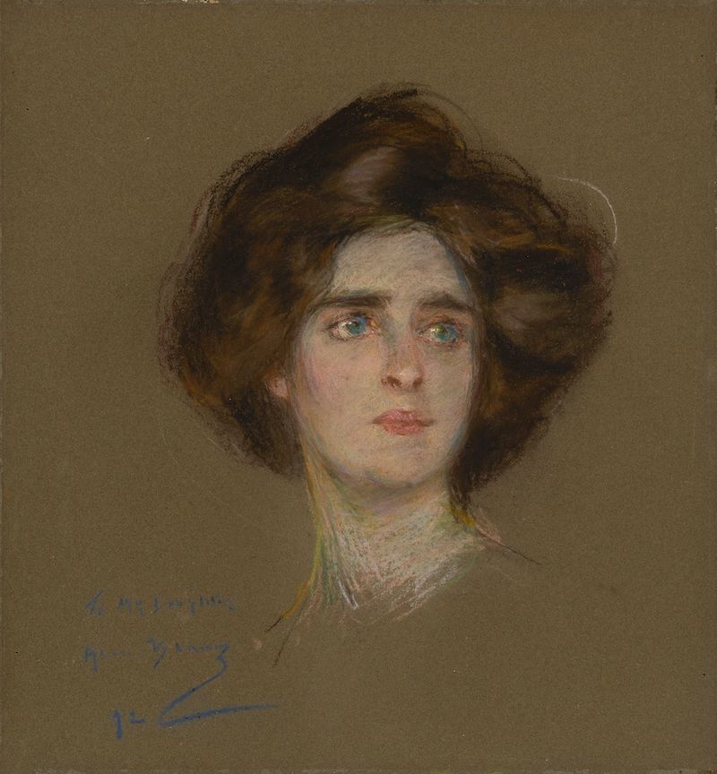 图8 艾丽丝·派克·巴尼,《专注的劳拉·德雷弗斯·巴尼》(Laura Attentive),纸板粉笔画,1902年,史密森尼美国艺术博物馆 藏