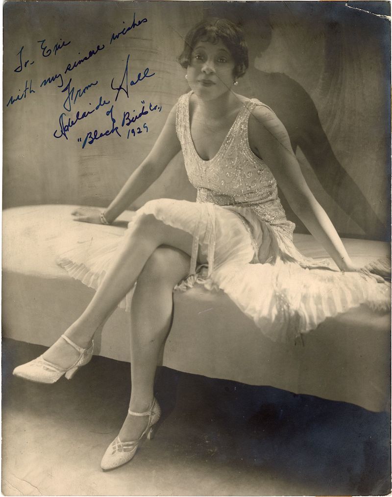 已在美国歌舞界成名的阿德拉德•霍尔(Adelaide Hall),1929年跟随黑人舞者的舞步来到巴黎,被巴黎评论界称为“新的约瑟芬•贝克”。美国黑人舞者在巴黎被视为性感尤物,是性凝视的对象,阿德拉德曾被要求脱掉上衣模仿约瑟芬•贝克,她对此断然拒绝。在女性摄影师日耳曼•科鲁尔(Germaine Krull)的镜头前,阿德拉德不再是物化的性感尤物,身着银色舞裙和爵士舞鞋,竖波波头,修长四肢和优雅美腿表现了舞蹈的美感。