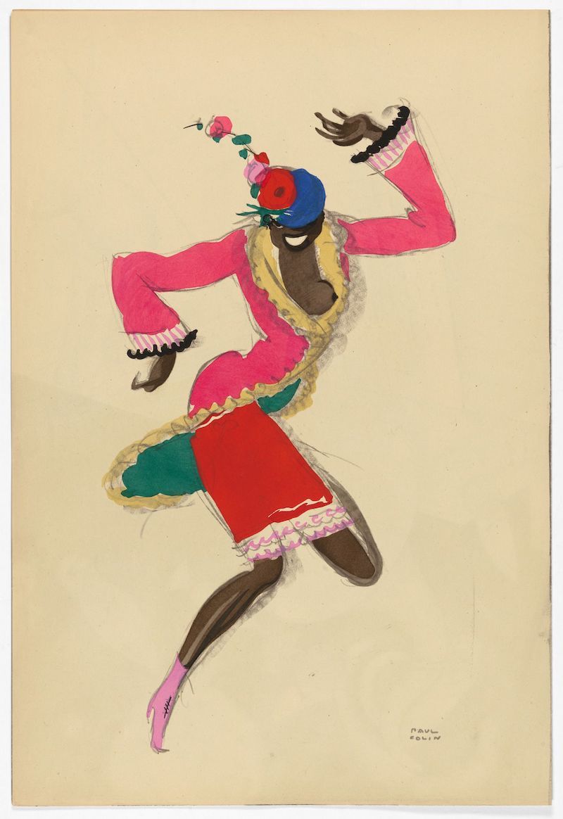 1927年,法国艺术家保罗•科林(Paul Colin)以美国黑人舞蹈家为题材创作系列画作《黑色狂热》(Le Tumulte Noir),以约瑟芬•贝克在舞剧《黑鸟》中的角色为原型。约瑟芬•贝克身穿洋红色“香蕉舞裙”,大胆裸露。
