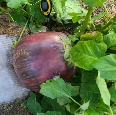 目前世界上最大的、重3.78公斤的茄子。图源:俄媒
