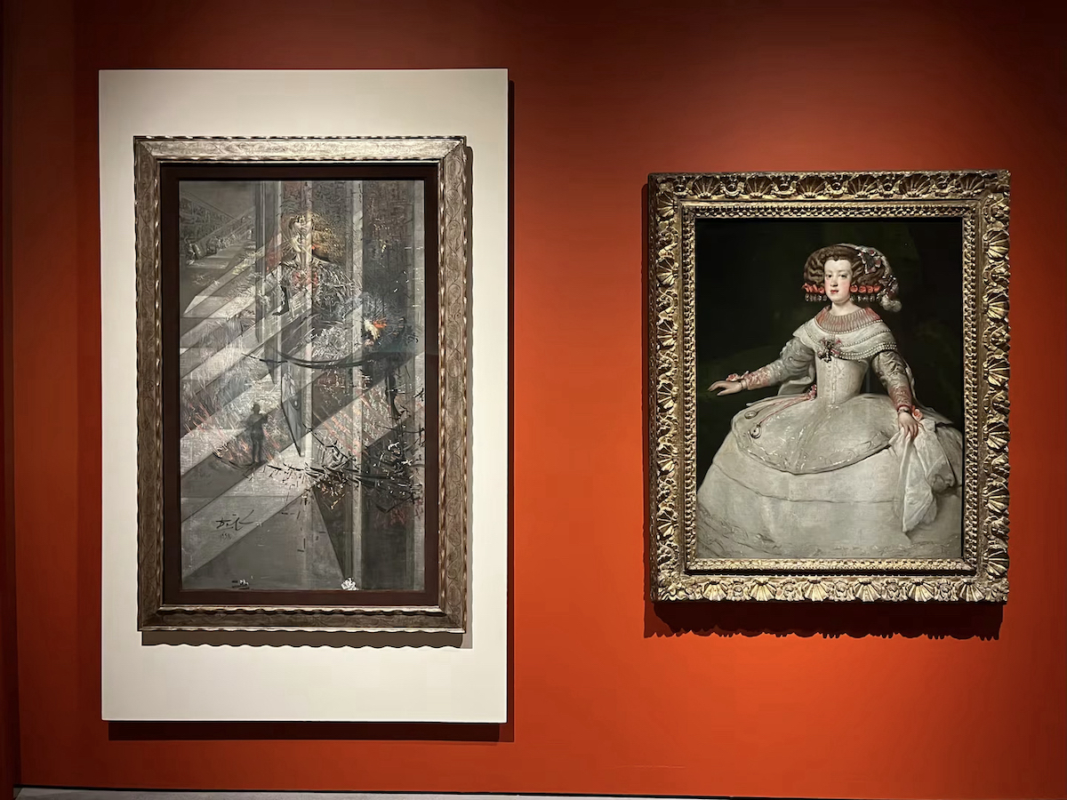 1653年《玛丽亚·特蕾莎公主》是委拉斯开兹工作室的作品,与达利1958年创作的重制作品《委拉斯开兹用他荣耀的光和影描绘了美丽的玛格丽特》(《玛格丽特公主》)并列。达利的灵巧笔触让女孩在光束中漂浮,在更新他最崇敬的大师的画作时,达利站在委拉斯开兹身旁,而不是在其之下。