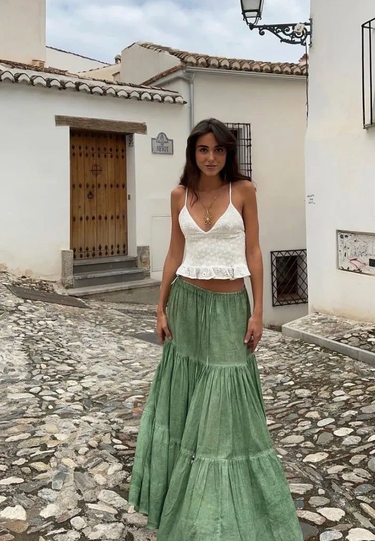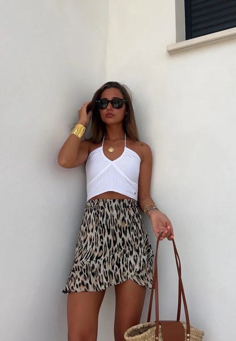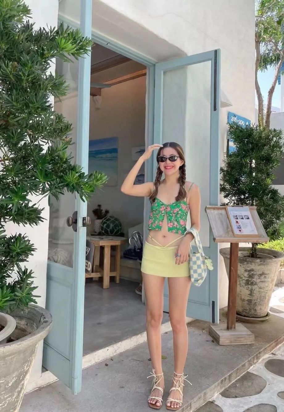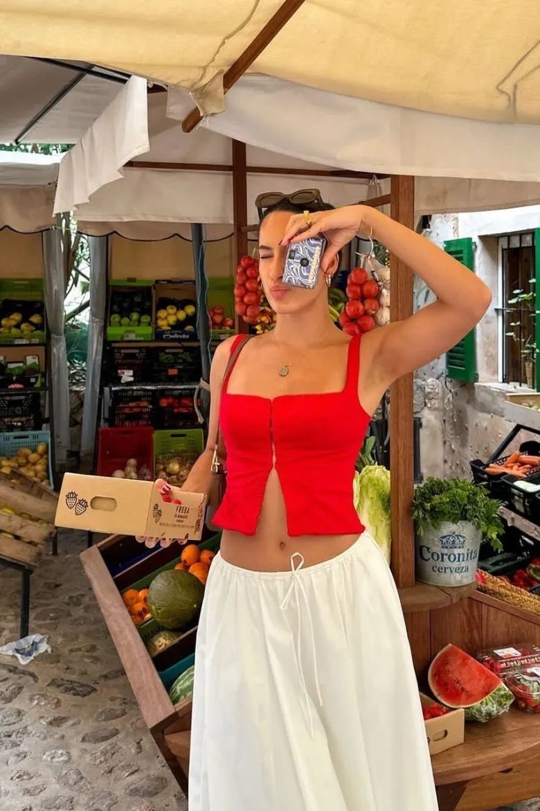 喜欢简单风格的朋友们不妨试试用纯色吊带搭配短裤或半裙,即使没有令人眼花缭乱的繁杂色彩,也十分吸睛。