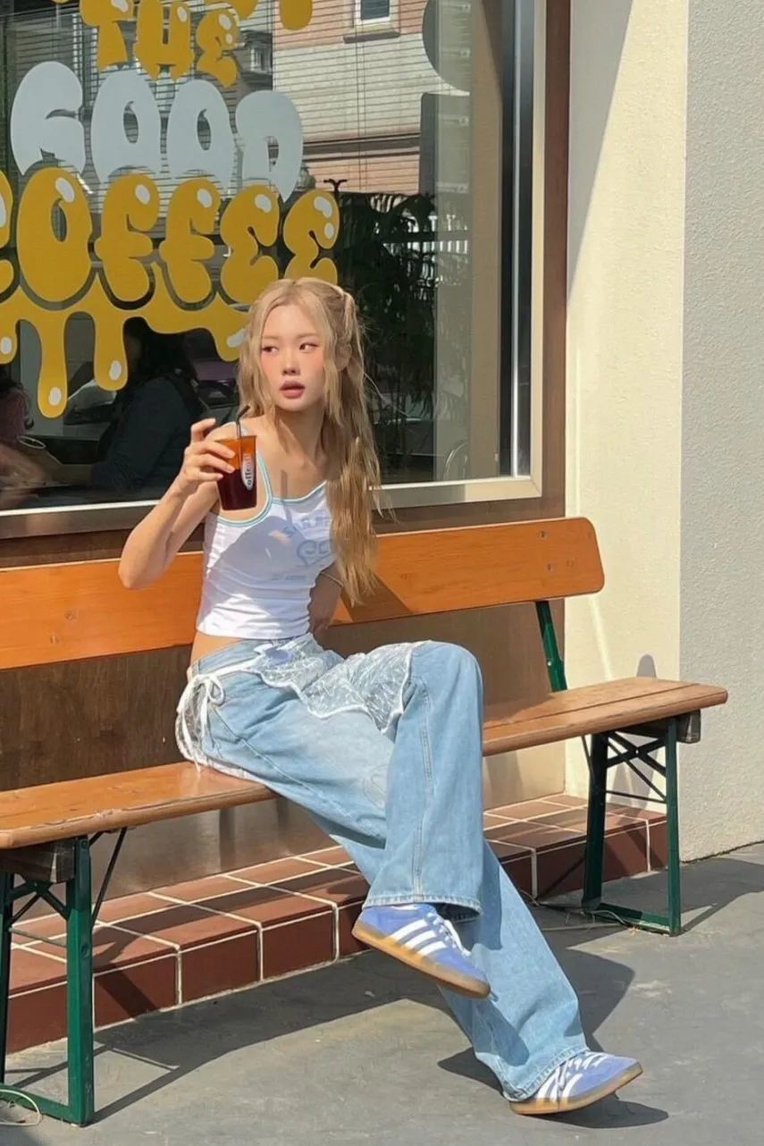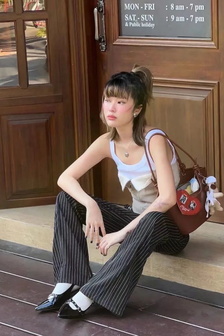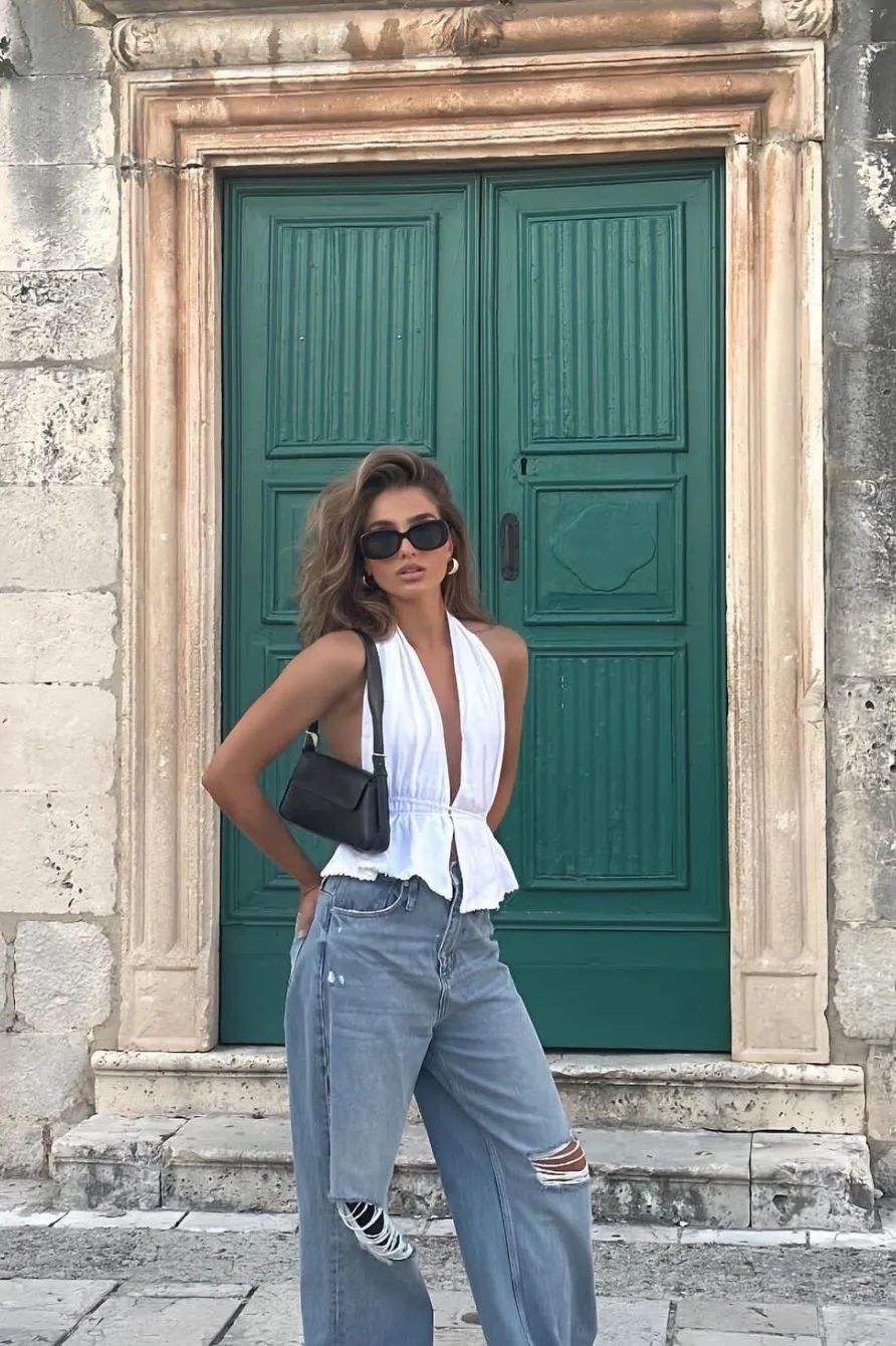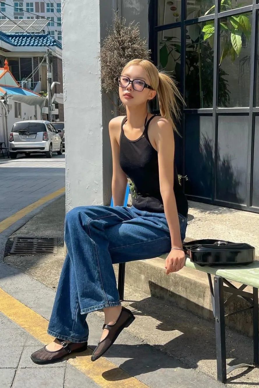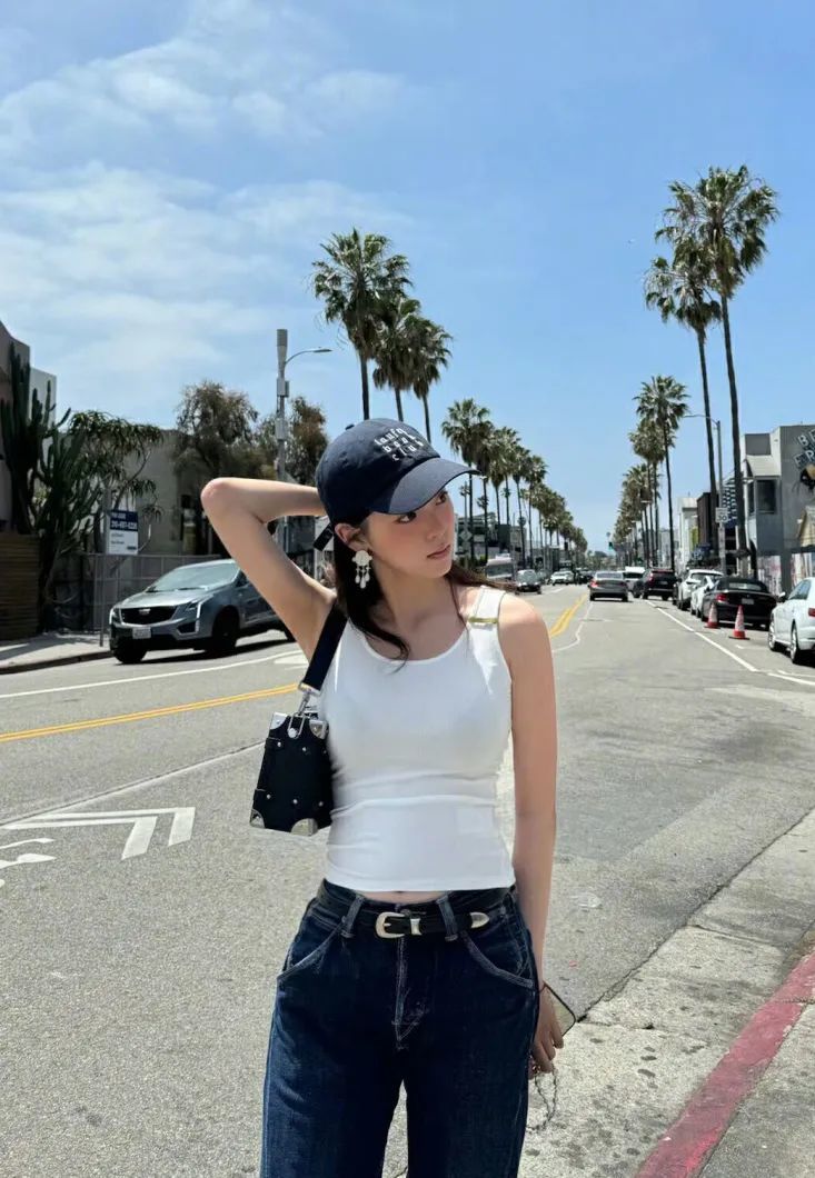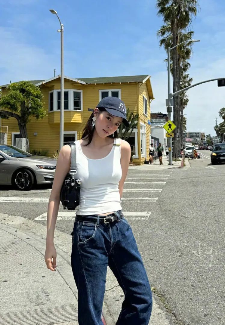 吊带加纯白色牛仔裤的穿搭方式则更具法式风情,十分适合职场女孩,工作日以这样的一身穿搭亮相,时尚又得体,不失为日常通勤上佳之选。