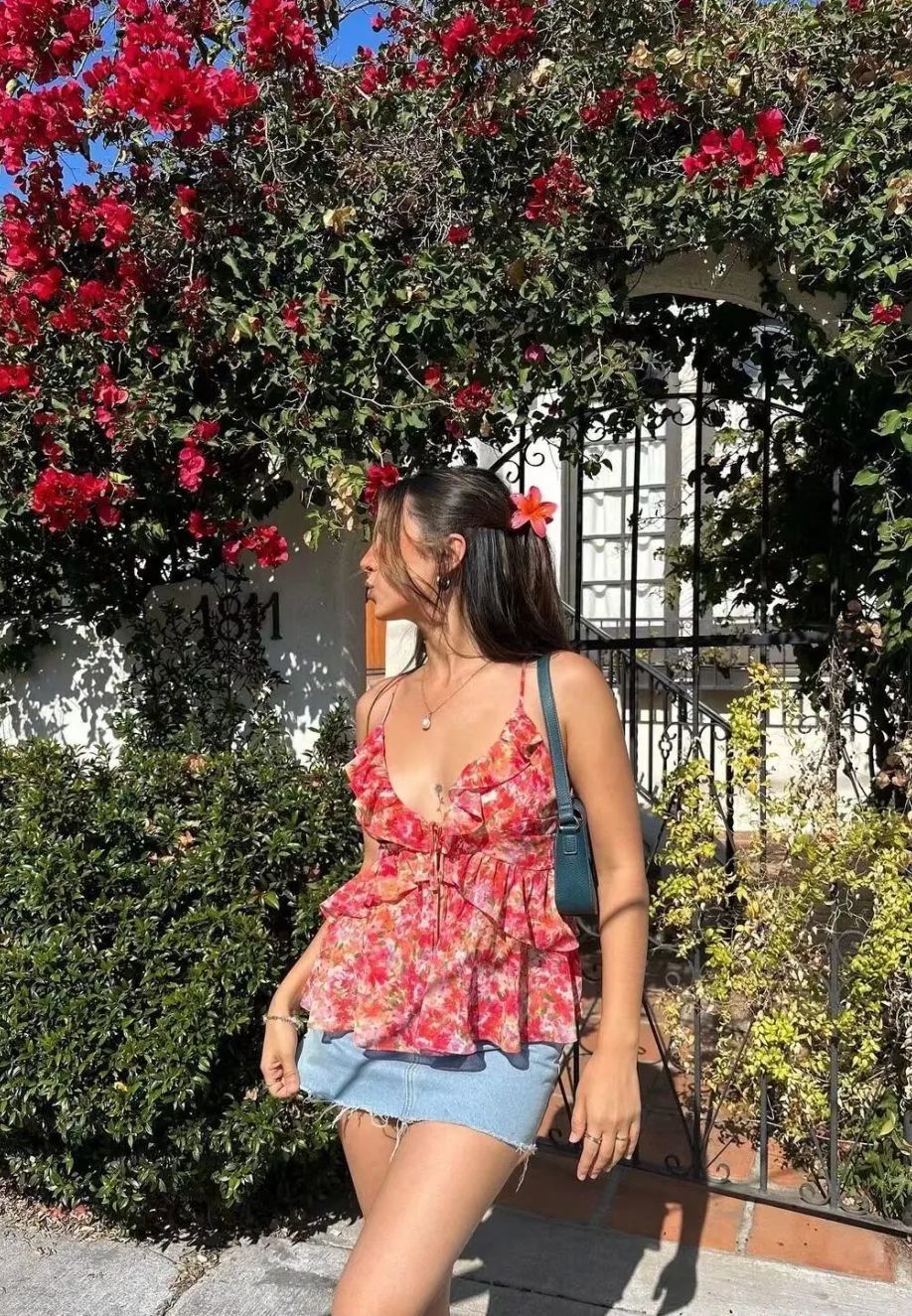 碎花元素似乎自带清新减龄特效,一袭碎花吊带充满了海滨风情的温柔与浪漫,仙气十足,仿佛一秒到了海滨假日,温柔得让人移不开眼。