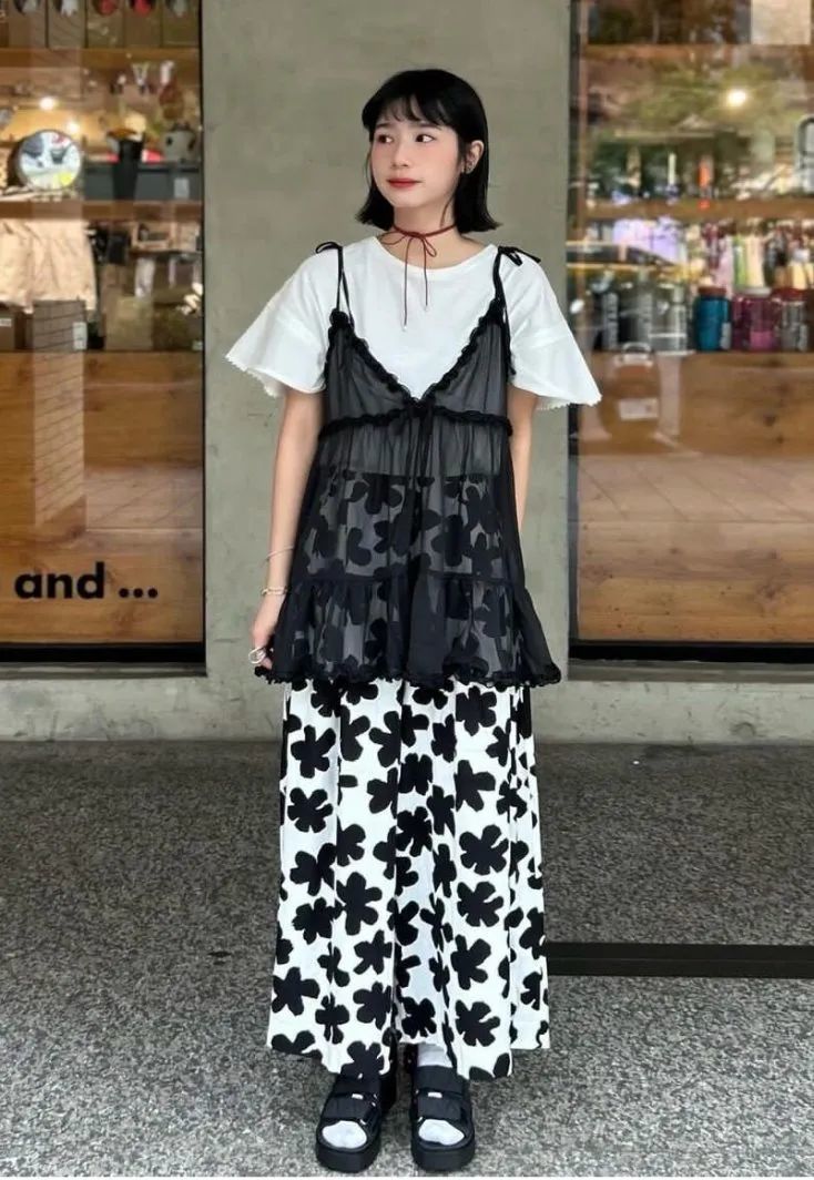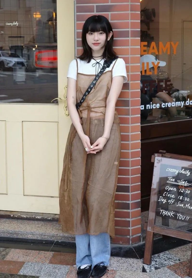 想要再甜酷风一些,还可以选择透明纱质地的吊带裙作为单品,内搭纯白半袖,无论是配休闲属性十足的浅色牛仔裤还是深色半裙,都别有一番潮流味道。
