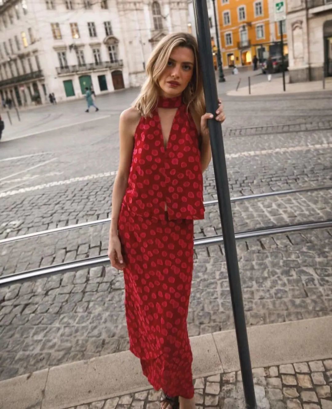 担心驾驭不了的朋友可以尝试最简单的同色系穿搭法则,简单的吊带配同色系半裙,色彩鲜明大胆,既解决了色彩搭配难题,又不会让基础款吊带过于单调。所以,只要掌握方法,简单的基础款也能穿出大牌时髦感。
