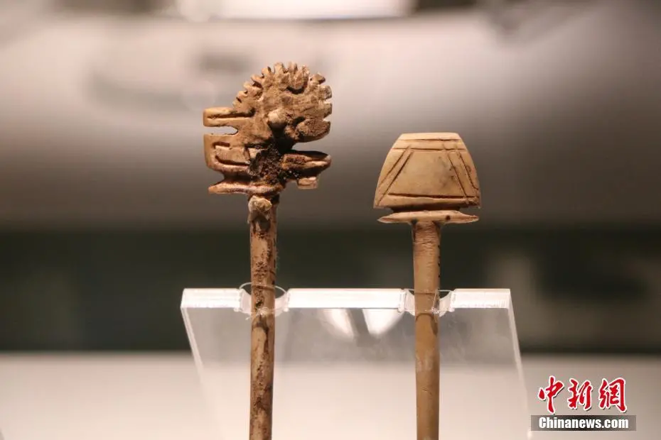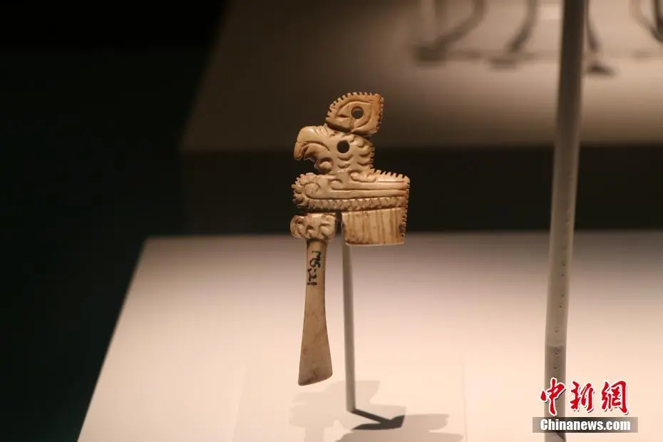 8月25日,在位于河南安阳的殷墟博物馆内,精美的玉器、骨器、青铜器吸引游客观赏。这些文物出土于安阳市殷墟宫殿宗庙遗址,距今已3300多年,是用玉和动物的骨、角、牙等制成的生活用器、生产工具、乐器、装饰品、雕刻艺术品等,其雕工精细,形态逼真,方寸之间可洞察商代匠人的“工匠精神”。图为骨笄。李海珠 摄