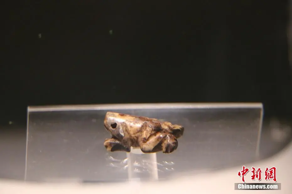 8月25日,在位于河南安阳的殷墟博物馆内,精美的玉器、骨器、青铜器吸引游客观赏。这些文物出土于安阳市殷墟宫殿宗庙遗址,距今已3300多年,是用玉和动物的骨、角、牙等制成的生活用器、生产工具、乐器、装饰品、雕刻艺术品等,其雕工精细,形态逼真,方寸之间可洞察商代匠人的“工匠精神”。图为嵌绿松石骨蛙。李海珠 摄