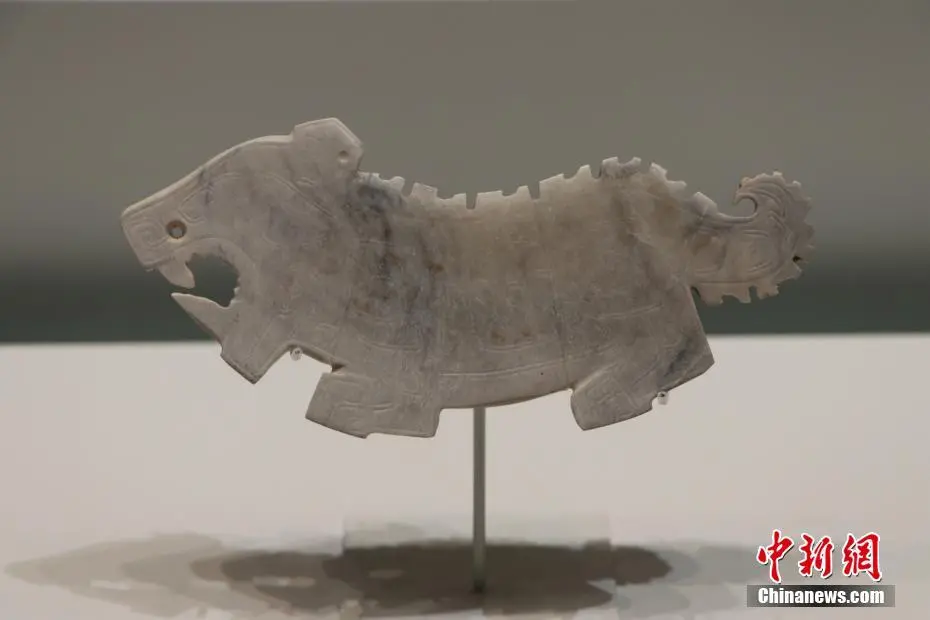 8月25日,在位于河南安阳的殷墟博物馆内,精美的玉器、骨器、青铜器吸引游客观赏。这些文物出土于安阳市殷墟宫殿宗庙遗址,距今已3300多年,是用玉和动物的骨、角、牙等制成的生活用器、生产工具、乐器、装饰品、雕刻艺术品等,其雕工精细,形态逼真,方寸之间可洞察商代匠人的“工匠精神”。图为玉虎。李海珠 摄