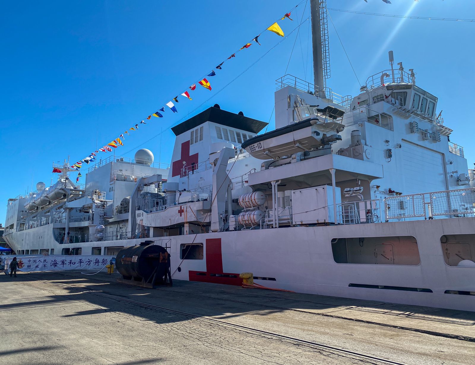 据了解,“和平方舟”号医院船是我国自主设计建造的首艘远洋医院船, 满载排水量14000吨,配置相当于国内三级甲等医院水平。