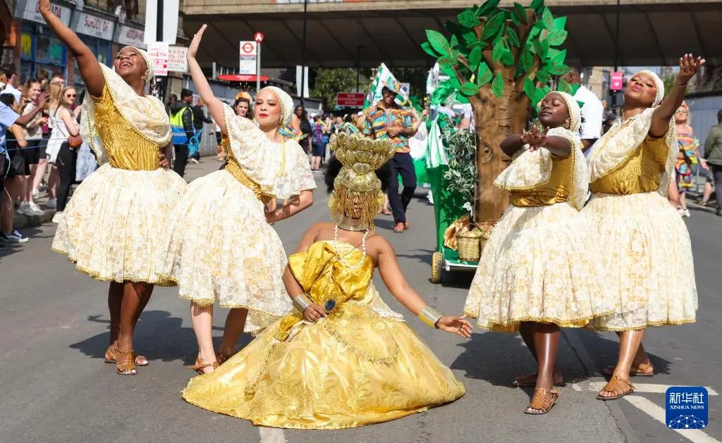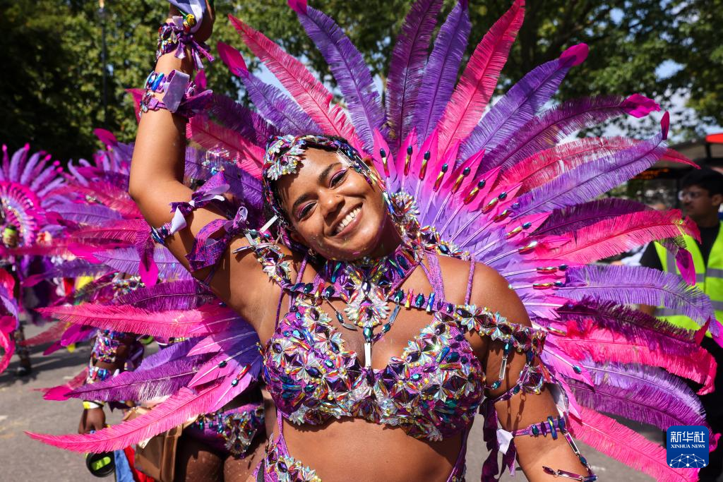 8月26日,表演者在英国伦敦参加诺丁山狂欢节。