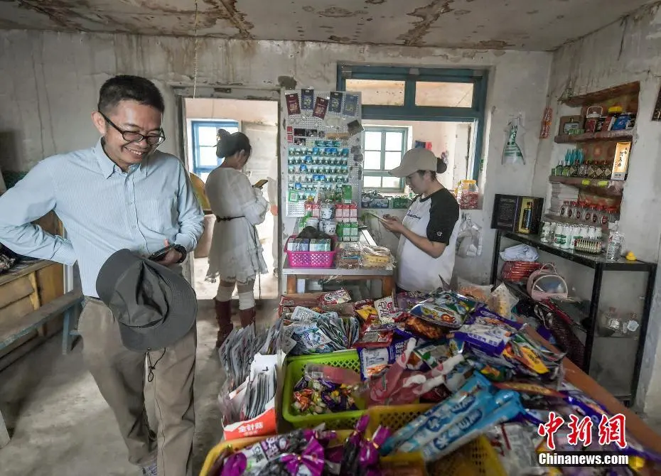 8月27日,新疆阿勒泰地区哈巴河县齐巴尔镇吉林新村,热播剧《我的阿勒泰》取景地“彩虹布拉克”,游客沉浸式体验剧中场景。据了解,随着电视剧《我的阿勒泰》爆火,剧中的取景地也接连出圈,全国各地的游客、剧迷纷至沓来,体验当地原生态的风土人情。图为游客在“小卖部”里选购商品。中新社记者 刘新 摄