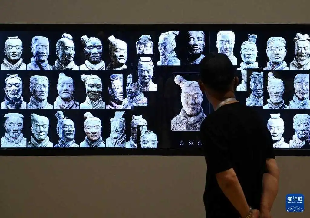 9月8日,在秦始皇帝陵博物院,观众在体验“千古一帝的地下王国——秦始皇陵考古发现展”上的数字展陈装置。新华社记者 李一博 摄