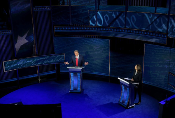 当地时间9月10日,美国副总统、民主党总统候选人哈里斯和共和党总统候选人特朗普在费城展开首场电视辩论。