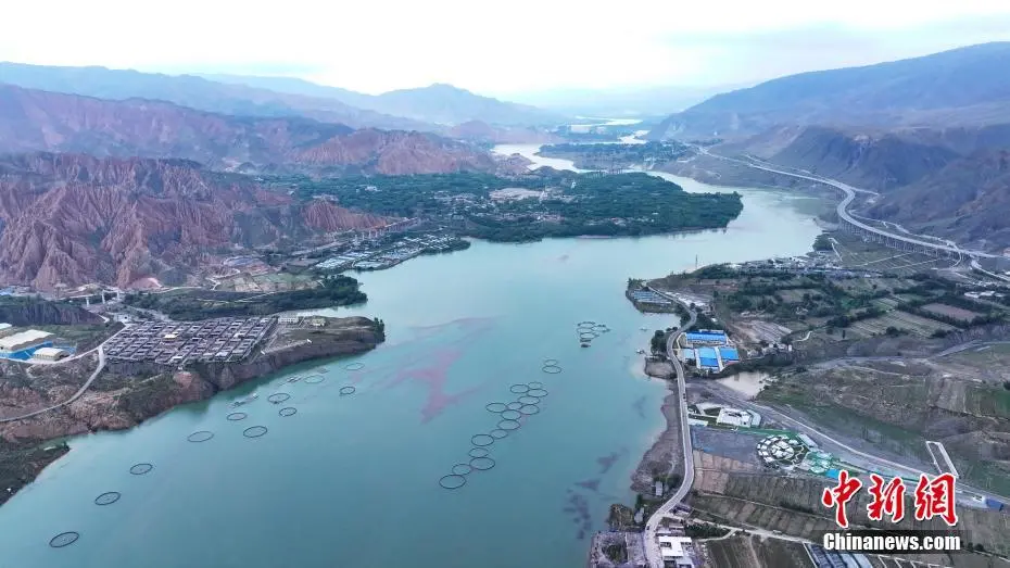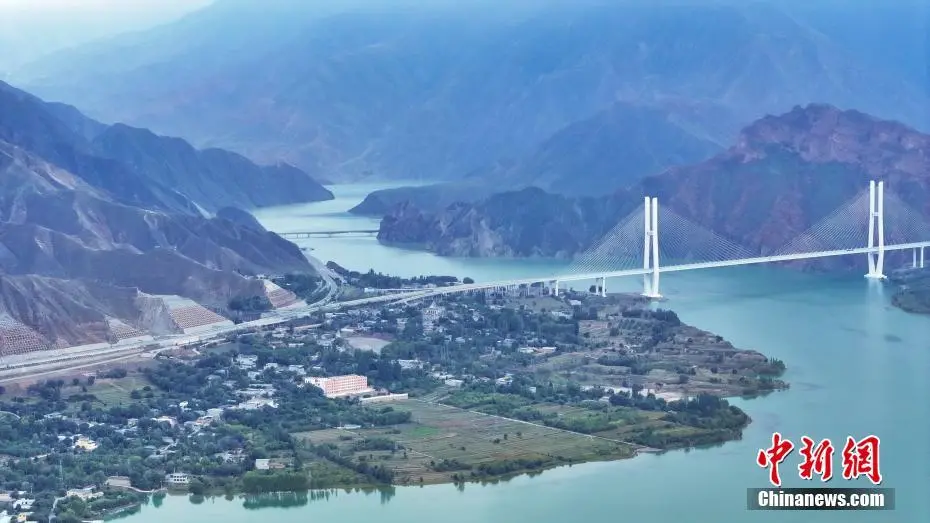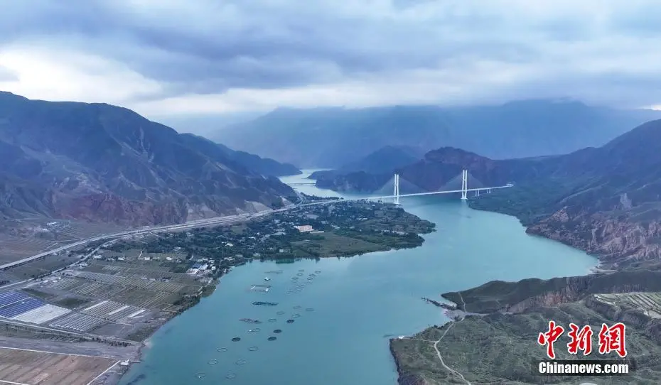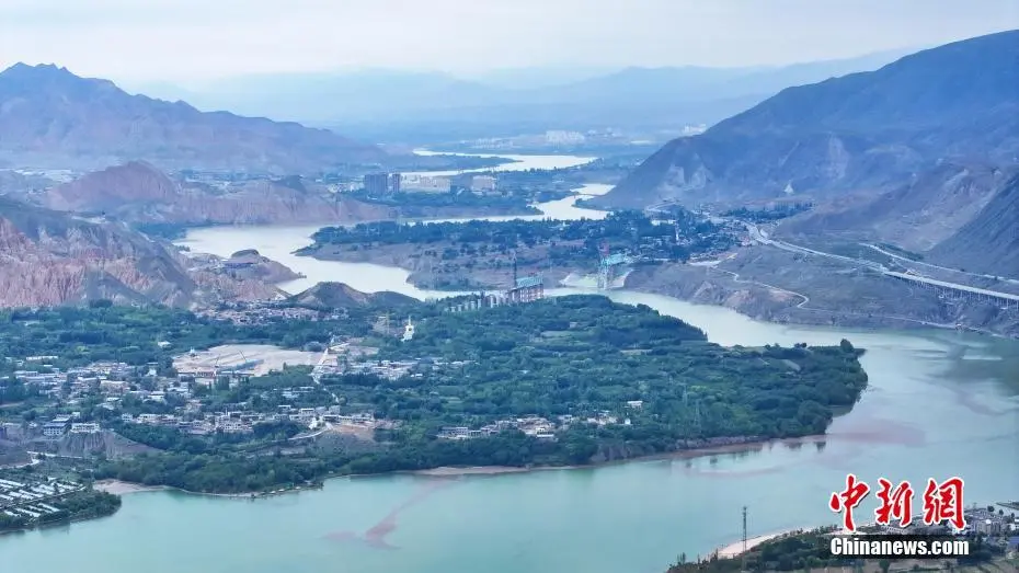 9月14日,航拍流经青海省黄南藏族自治州尖扎县境内的黄河图景。中秋将至,在青藏高原的尖扎县境内,黄河岸畔秋风渐凉,远眺黄河谷地,碧色河水在山间蜿蜒流淌,与群山、绿树相互映衬,朦胧天色下宛如一幅丹青水墨画。(无人机照片)中新社记者 马铭言 摄