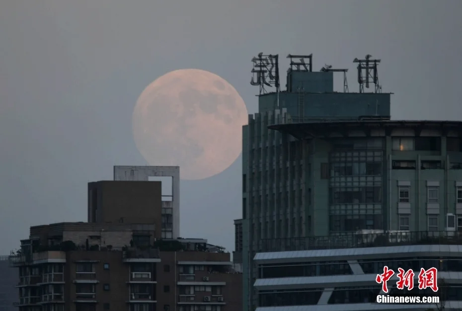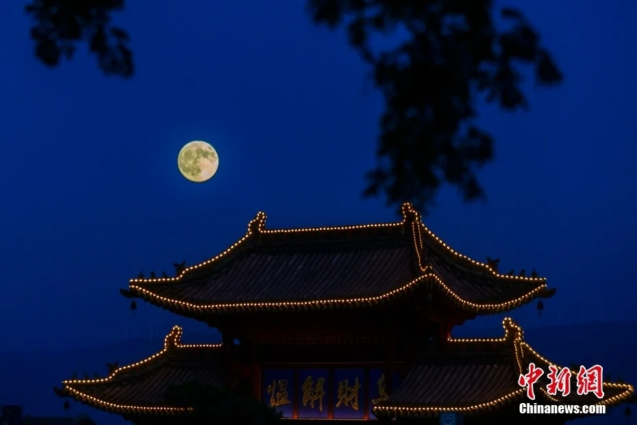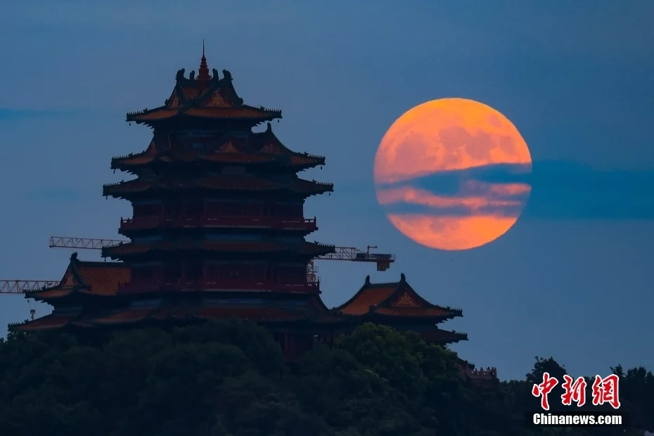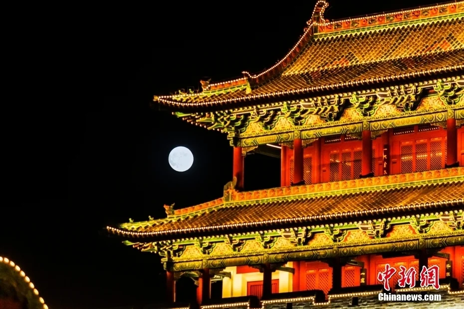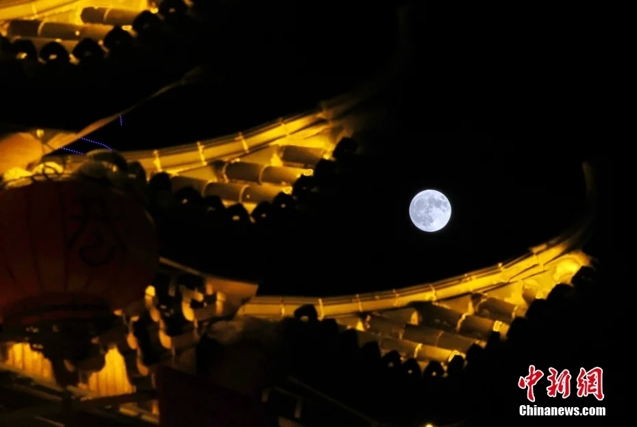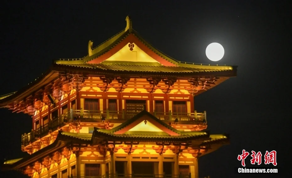 9月17日,在河南省洛阳市牡丹阁拍摄的“超级月亮”。图/ICphoto