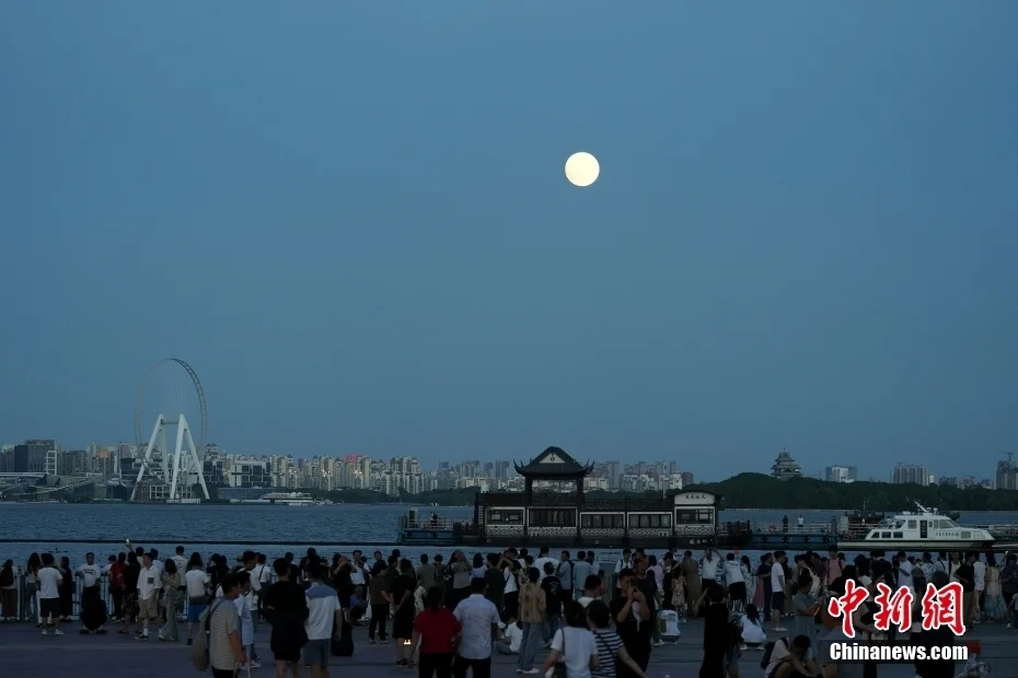 9月17日,“超级月亮”在杭州西湖上空升起。图/ICphoto