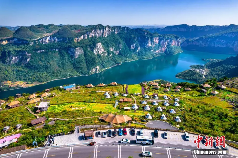 图为游客在乌江源百里画廊核心景区的化屋村露营基地游览观光。史开心 摄