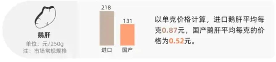 进口鹅肝与国产鹅肝之间的价差。(图/2023年淘宝隐藏土特产报告)