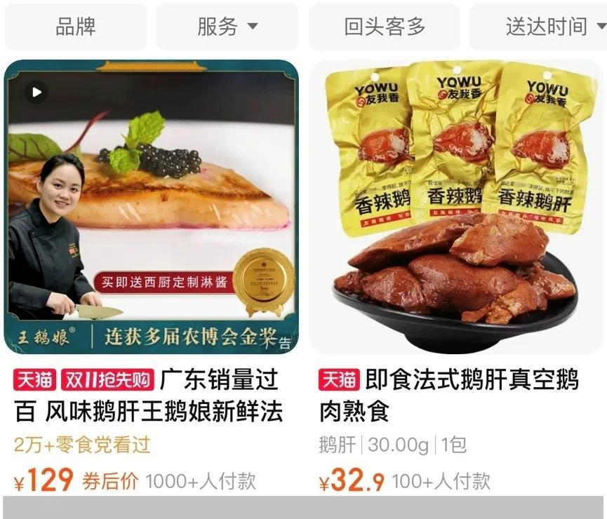 电商平台上售卖的国产鹅肝零食。(图/购物软件截图)