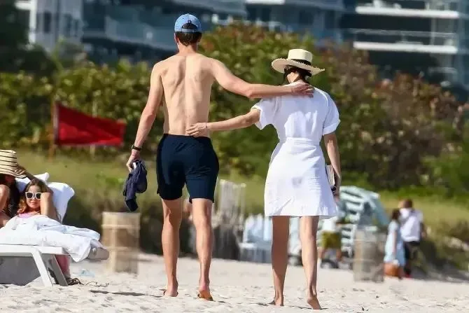 几天前被拍到在迈阿密度假,也是一身简单干净的白色T恤+短裤,一双人字拖,甚至还端了个“茶缸子”~