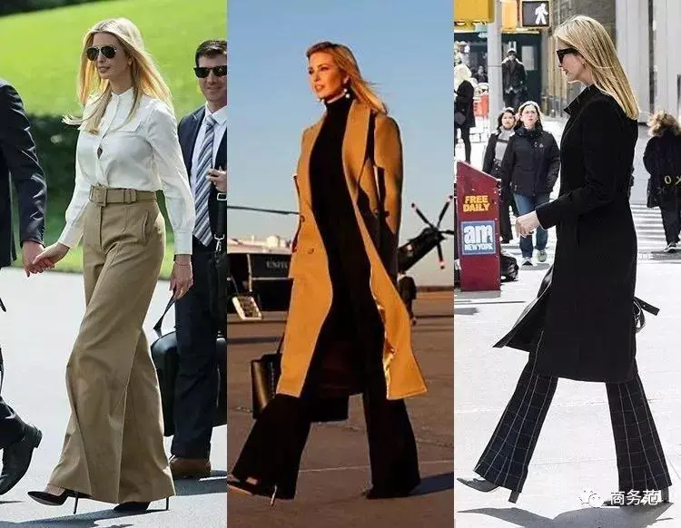 修饰腿型和拉长线条的阔腿裤,伊万卡的衣橱里也有一打,走起路来拉风不说,每套都自带女政客宣传片BGM。