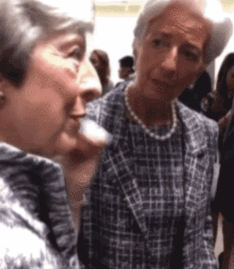 在欧洲央行行长拉加德、前英国首相特蕾莎·梅等人交谈时,一旁的伊万卡突然插话。本来在认真倾听梅姨讲话的拉加德,瞬间露出问号脸。在网络上还得了个#Unwantedivanka(不请自来的伊万卡)外号。