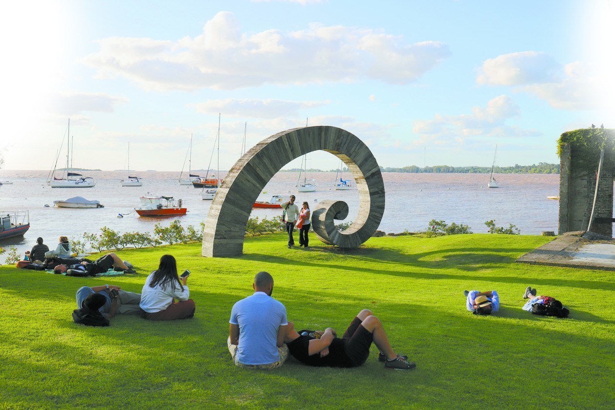 人们喜欢在拉普拉塔河河畔翠绿的草坪上休憩
