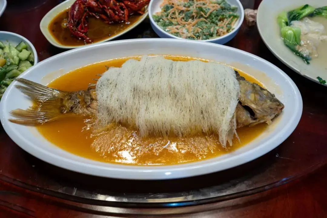 看似简单的做法,实则最考验厨师的眼力,入锅炸鱼时稍不留神,鱼皮就会皱缩,香味也锐减。只有时间把握得刚刚好,鱼才能焦而不烂,细若发丝的龙须面搭配鲜亮的糖醋汁,入口酸甜酥脆,外焦里嫩。