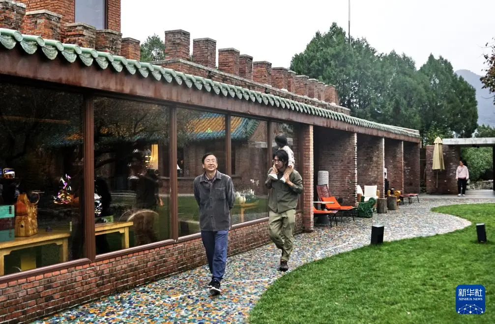 游客在北京市怀柔区渤海镇北沟村的特色民宿内游玩(10月17日摄)。近年来,北沟村先后引进投资打造乡村民宿和高端精品酒店,并在村内建设风格独特的美术馆、乡村阅读室等文化设施,以及京郊首家民宿中心,集约化经营模式推动了村级民宿产业走上兴旺发展的道路。