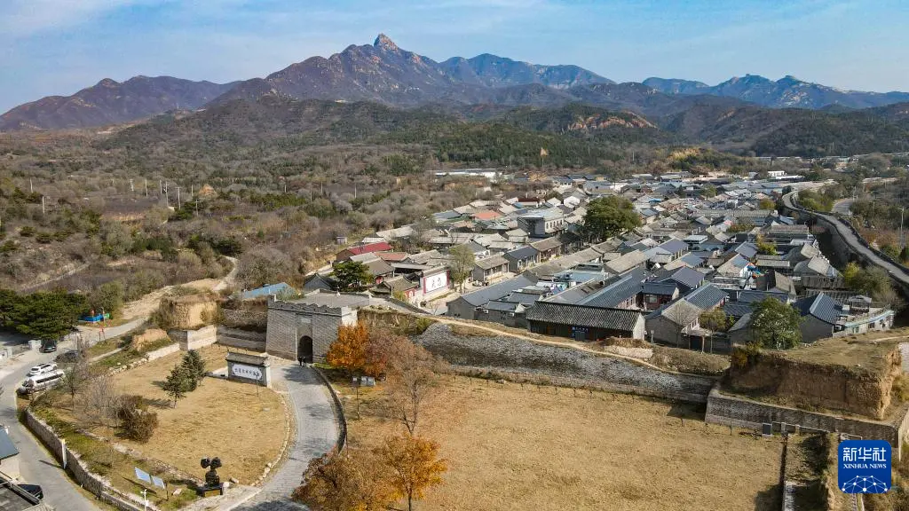 位于北京市延庆区八达岭镇的岔道古城仍保留着城墙、古街道、城隍庙、关帝庙等遗迹(无人机照片,11月1日摄)。
