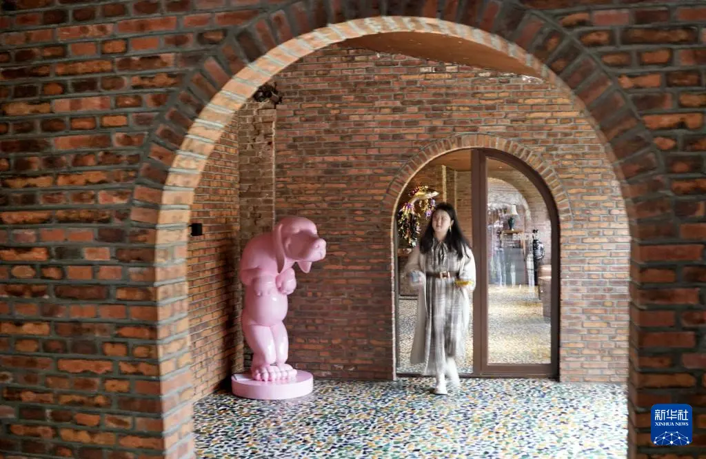 北京市怀柔区慕田峪长城脚下的渤海镇北沟村内的美术馆(10月29日摄)。