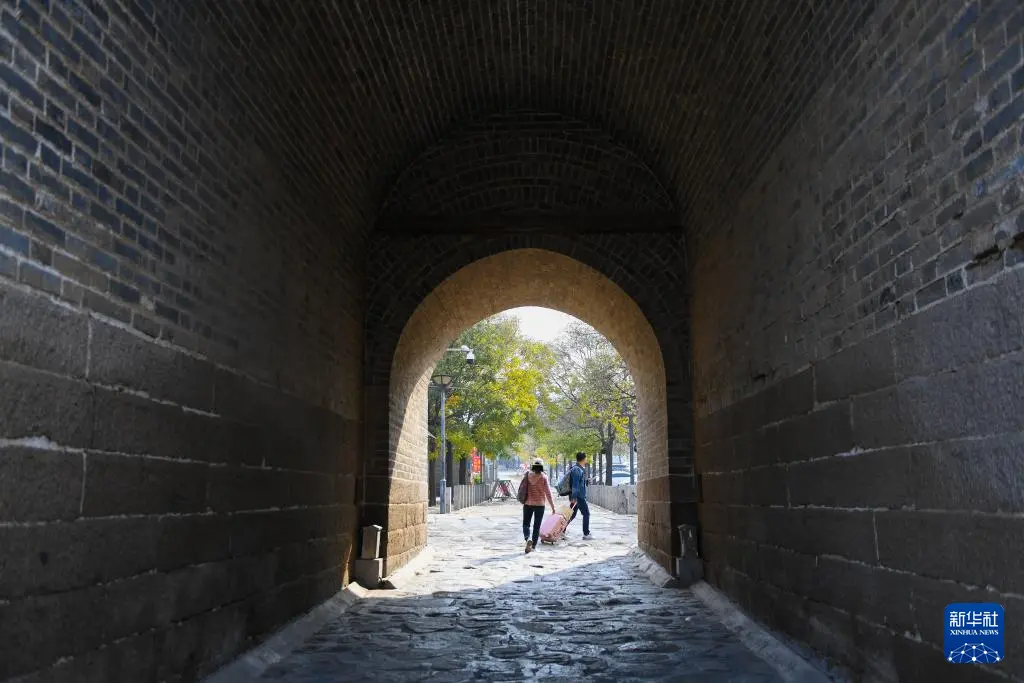 游客在北京市延庆区八达岭镇石峡村参观(11月7日摄)。