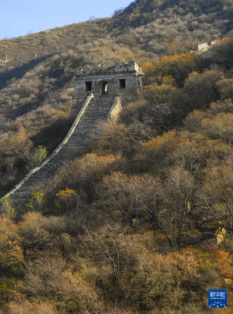 北京市延庆区八达岭镇石峡村附近的长城(11月7日摄)。石峡村始建于明代,曾是居庸关北部的重要关口。近年来,石峡村依托长城资源,打造精品民宿、发展休闲农业等,迎接八方来客,逐步摸索出一条乡村文旅发展新路径。