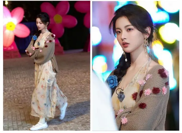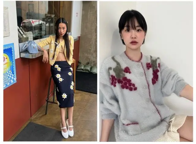 杨超越这件宽松开衫对身材限制并不大,开衫上零星点缀的小花赏心悦目,素净的粗针质感让造型看起来并不花哨,反而轻松随意。