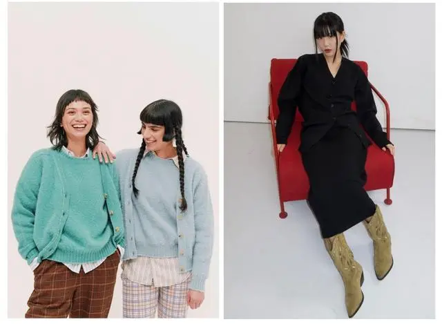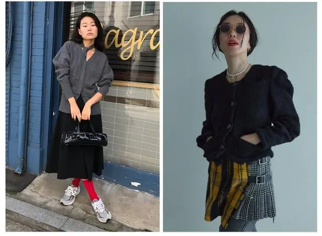 而袖口是宽松设计的开衫,衣服线条则会有种垂坠感,同样,这种开衫也能很好地调节身材比例,可以削弱一些肩膀圆润的体积感,拉长颈部线条。