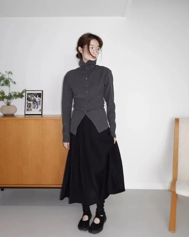 随便搭配裙装,高领开衫蕴含的知性优雅就能尽显,恰到好处的剪裁设计,帅气利落的裹身,穿上后有种很含蓄的率性。