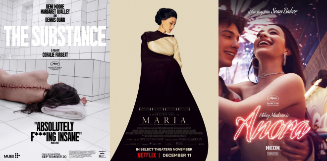 演员方面,安吉丽娜·朱莉凭借影片《玛利亚》获得提名,戛纳获奖片《阿诺拉》主演米奇·麦迪森、戛纳话题之作《某种物质》主演黛米·摩尔、辛西娅·埃里沃、卡拉·索菲娅·加斯科恩、玛丽安娜·琼-巴普蒂斯特获得提名。但最佳女主角热门人选妮可·基德曼、凯特·温斯莱特则爆冷掉出提名名单。