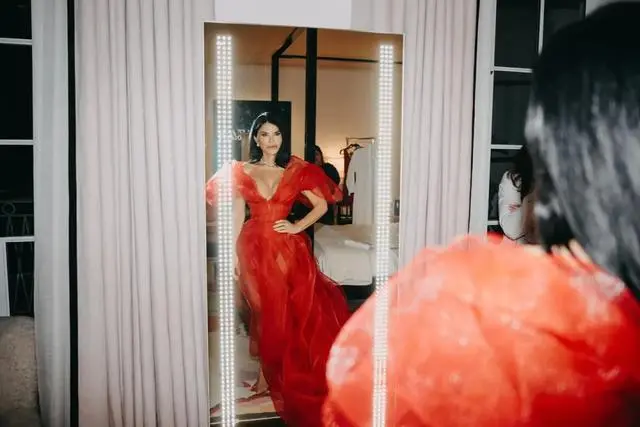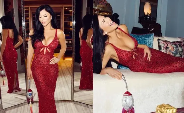 要不就是镂空元素,贝佐斯60岁生日派对上,她就上身laurabasci红裙,胸口挖剪设计很有“心机”。