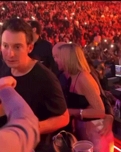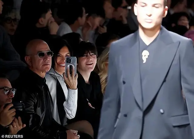 前几天,贝佐斯甚至还被发现在演唱会上,搂着一位金发美女,面前的桑切斯拥抱上来,他还有往后躲的动作↓