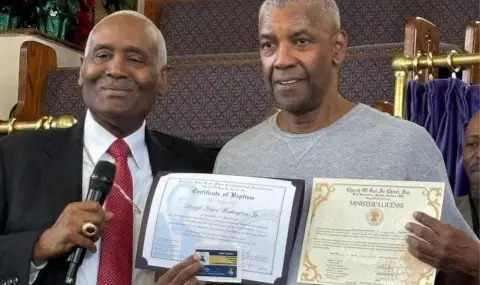 丹泽尔·华盛顿展示牧师执照