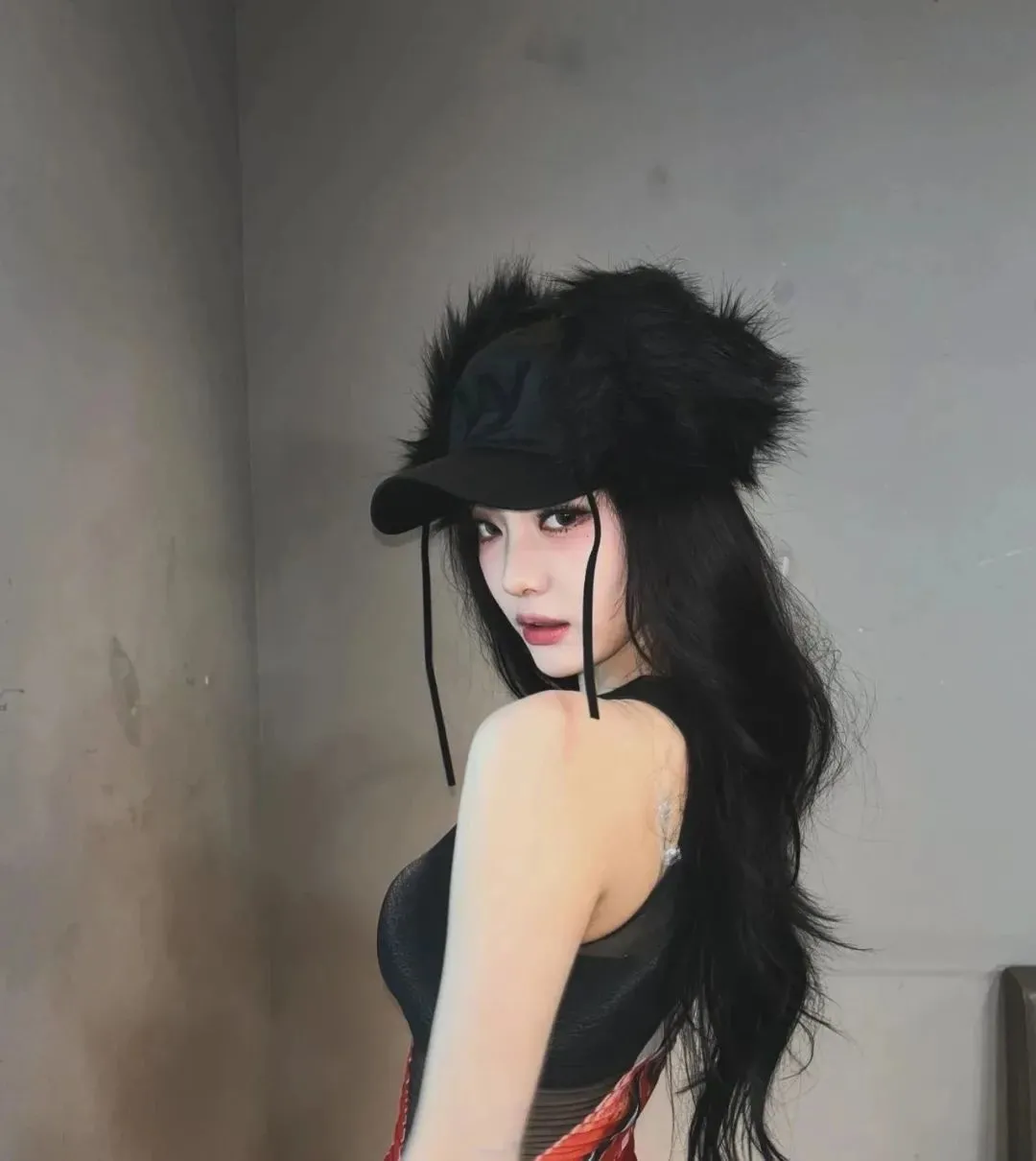 类似的款式可以看看同样很流行的雷锋帽,今年Open YY的这顶毛毛棒球帽“实火”,以毛绒材质的独特质感和传统棒球帽碰撞,完美结合了街头风和舒适感,宁艺卓就有好几个款式。