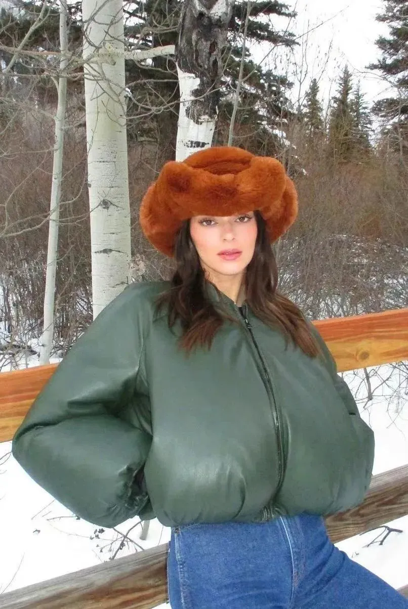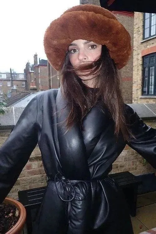 最为修饰脸型的无疑是宽檐帽,宽檐因为貂毛重量的缘故通常更衬脸小。走古典路线选基础色,走潮流路线当然pick跳跃彩色系,也是斯拉夫氛围不可缺少的点睛之笔。人人都能驾驭的英格兰手工品牌 Emma Brewin 就很值得推荐,它是被Kendall带火的,保暖系数杠杠的。